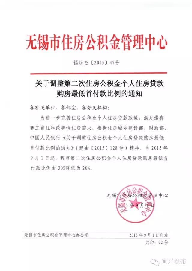 8月31日,住建部、財政部、央行聯(lián)合發(fā)布公積金貸款最新政策,要求首套房貸結(jié)清后,二套房貸款首付由30%降至20%。記者日前從無錫市住房公積金管理中心宜興市分中心獲悉,無錫市公積金新政也在**時間落地。